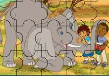 ¡Acompaña a Dora y Diego en su aventura por la selva! Descubre al simpático elefante y diviértete completando este tierno puzzle. ¡Ideal para niños!